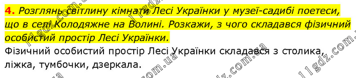 Розглянь світлину кімнати Лесі Українки у музеї-садибі поетеси, що в селі Колодяжне на Волині. Розкажи, з чого складався фізичний особистий простір Лесі Українки. Фізичний особистий простір Лесі Українки складався з столика, ліжка, тумбочки, дзеркала.