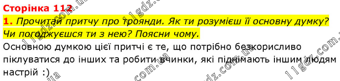 Прочитай притчу про троянди. Як ти розумієш її основну думку? Чи погоджуєшся ти з нею? Поясни чому. Основною думкою цієї притчі є те, що потрібно безкорисливо піклуватися до інших та робити вчинки, які піднімають іншим людям настрій :)