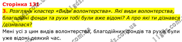 Розглянь кластер «Види волонтерства». Які види волонтерства, благодійні фонди та рухи тобі були вже відомі? А про які ти дізнався /дізналася? Мені усі з цим видів волонтерства, благодійних фондів та рухів були уже відомі деякий час.