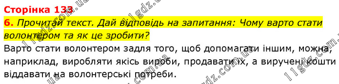 Прочитай текст. Дай відповідь на запитання: Чому варто стати волонтером та як це зробити? Варто стати волонтером задля того, щоб допомагати іншим, можна, наприклад, виробляти якісь вироби, продавати їх, а виручені кошти віддавати на волонтерські потреби.