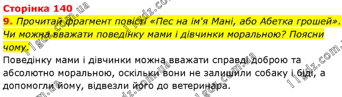 Прочитай фрагмент повісті «Пес на ім'я Мані, або Абетка грошей». Чи можна вважати поведінку мами і дівчинки моральною? Поясни чому. Поведінку мами і дівчинки можна вважати справді доброю та абсолютно моральною, оскільки вони не залишили собаку і біді, а допомогли йому, відвезли його до ветеринара.