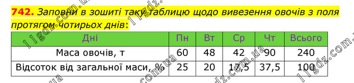 Заповни в зошиті таку таблицю щодо вивезення овочів з поля протягом чотирьох днів: