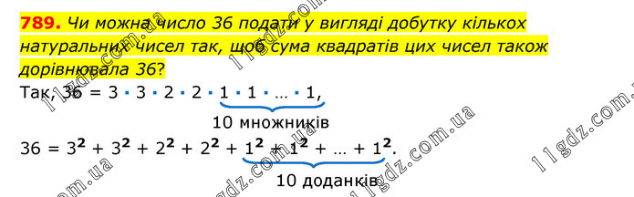 Чи можна число 36 подати у вигляді добутку кількох натуральних чисел так, щоб сума квадратів цих чисел також дорівнювала 36?
