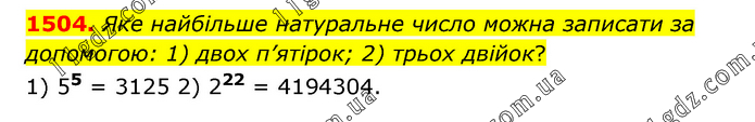 Яке найбільше натуральне число можна записати за допомогою: 1) двох п’ятірок; 2) трьох двійок? 1) 55 = 3125 2) 222 = 4194304.