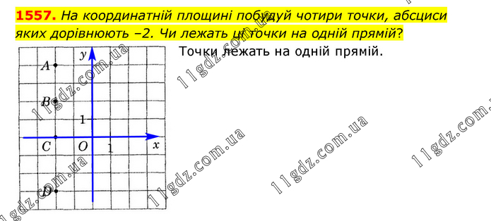 На координатній площині побудуй чотири точки, абсциси яких дорівнюють –2. Чи лежать ці точки на одній прямій? Точки лежать на одній прямій.
