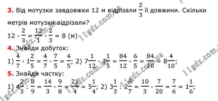 ЗАВДАННЯ ДАЯ ПЕРЕВІРКИ ЗНАНЬ ДО § 9-14 1. Виконай множення: 1) 1/4 · 8/9 = 8/36; 2) 7/30 · 3 = 7/10; 2. Виконай ділення: 1) 4/9 : 16/27 = 4/9 · 27/16 = 3/4; 2) 5/1 : 5/11 = 5/1 · 11/5 = 11/1 = 11