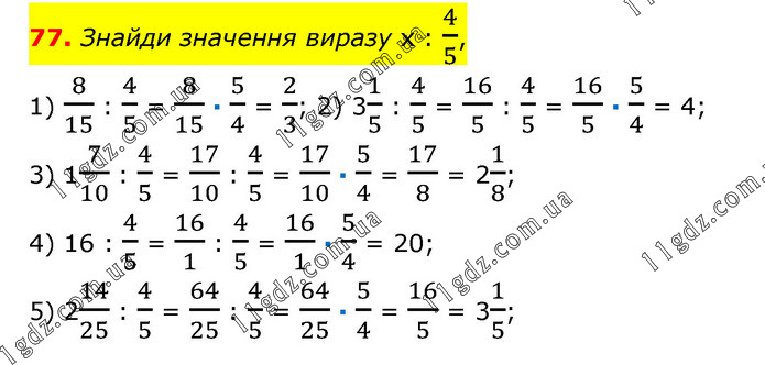 Знайди значення частки: 1) 18/27 : 15/9 = 35/27 : 14/9 = 35/27 · 9/14 = 35/42; 2) 11/35 : 24/7 = 36/35 : 18/7 = 36/35 · 7/18 = 2/5; 3) 19/25 : 73/5 = 19/25 : 38/5 = 19/25 · 5/38 = 1/10; 4) 211/12 : 31/8 = 35/12 : 25/8 = 35/12 · 8/25 = 14/15;