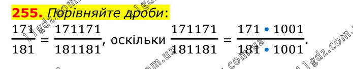Порівняйте дроби: 171/181 = 171171/181181, оскільки 171171/181181 = (171 • 1001)/(181 • 1001).