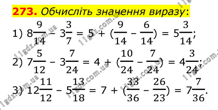Обчисліть значення виразу: 1) 89/14 – 33/7 = 5 + (9/14 – 6/14) = 53/14; 2) 75/12 – 37/24 = 4 + (10/24 – 7/24) = 43/24; 3) 1211/12 – 513/18 = 7 + (33/36 – 26/23) = 77/36.