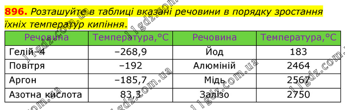 Розташуйте в таблиці вказані речовини в порядку зростання їхніх температур кипіння.