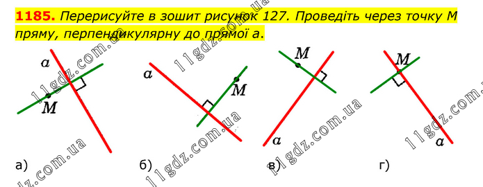 Перерисуйте в зошит рисунок 127. Проведіть через точку M пряму, перпендикулярну до прямої а.