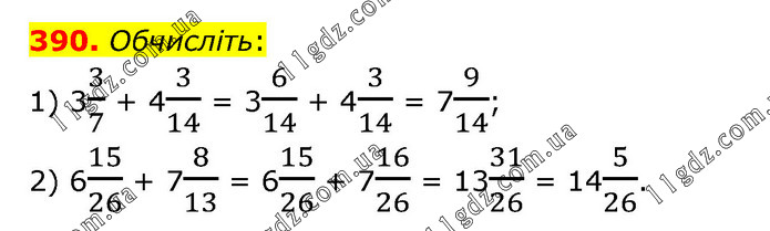 Обчисліть: 1) 33/7 + 43/14 = 36/14 + 43/14 = 79/14; 2) 615/26 + 78/13 = 615/26 + 716/26 = 1331/26 = 145/26.