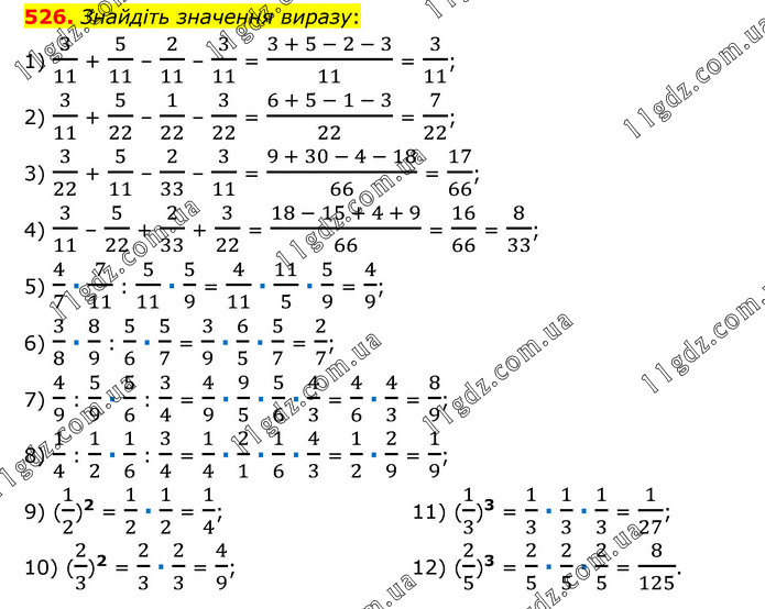 524. Знайдіть число, якщо: 1) 5/6 : 1/3 = 5/6 ∙ 3 = 5/2 = 21/2; 2) 4/21 : 2/7 = 4/21 ∙ 7/2 = 2/3; 3) 25/42 : 5/6 = 25/42 ∙ 6/5 = 5/7. 525. Знайдіть число, якщо: 1) 1/6 : 1/2 = 1/6 ∙ 2 = 1/3; 2) 4/9 : 2/3 = 4/9 ∙ 3/2 = 2/3; 3) 6 : 3/5 = 6 ∙ 5/3 = 15.