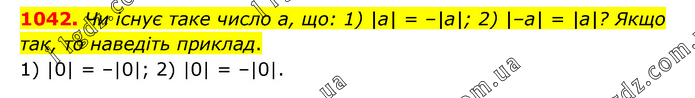 Чи існує таке число а, що: 1) |а| = –|а|; 2) |–а| = |a|? Якщо так, то наведіть приклад. 1) |0| = –|0|; 2) |0| = –|0|.
