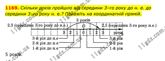 Скільки років пройшло від середини 3–го року до н. е. до середини 3–го року н. е.? Покажіть на координатній прямій.