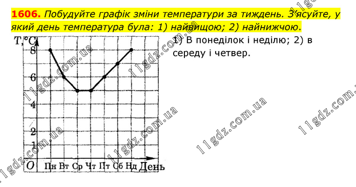 Побудуйте графік зміни температури за тиждень. З’ясуйте, у який день температура була: 1) найвищою; 2) найнижчою. 1) В понеділок і неділю; 2) в середу і четвер.
