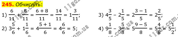 § 2. Додавання і віднімання звичайних дробів » 245