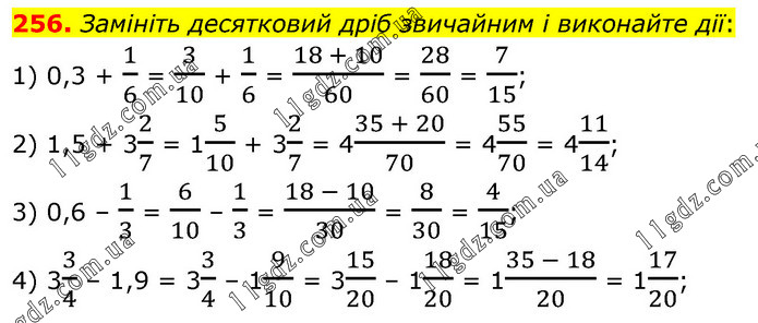 § 2. Додавання і віднімання звичайних дробів » 256