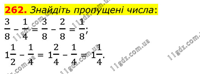 § 2. Додавання і віднімання звичайних дробів » 262