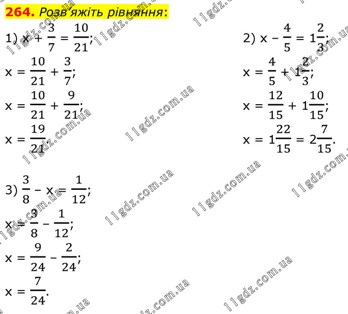 § 2. Додавання і віднімання звичайних дробів » 264