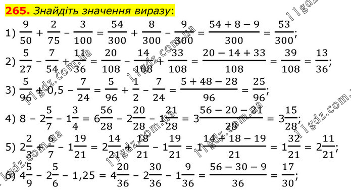 § 2. Додавання і віднімання звичайних дробів » 265