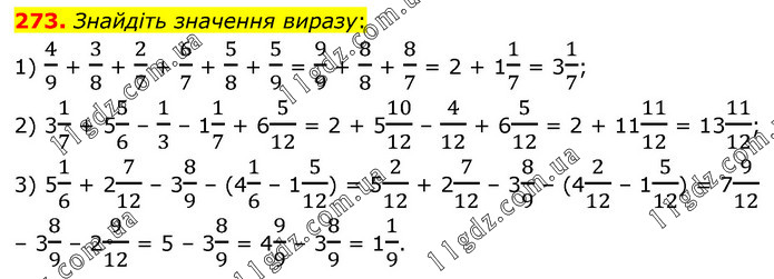§ 2. Додавання і віднімання звичайних дробів » 273