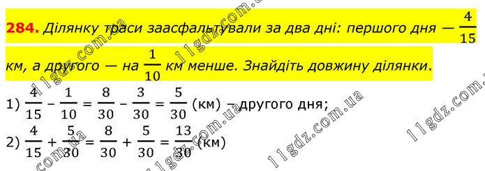 § 2. Додавання і віднімання звичайних дробів » 284