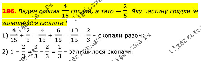 § 2. Додавання і віднімання звичайних дробів » 286