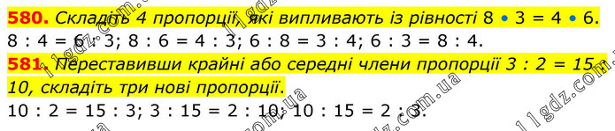 § 4. Відношення і пропорції » 580-581