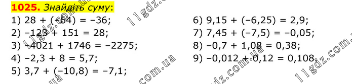 § 5. Раціональні числа. Додавання і віднімання » 1025