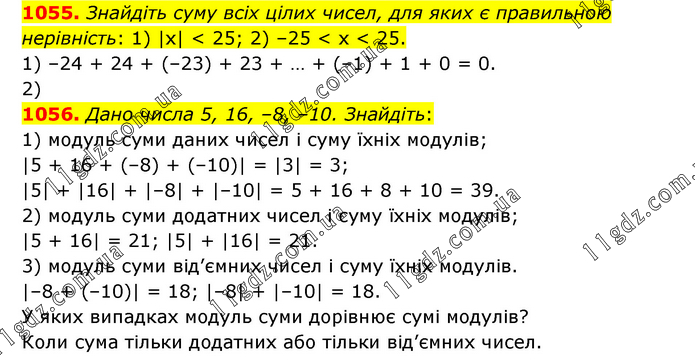 § 5. Раціональні числа. Додавання і віднімання » 1055-1056