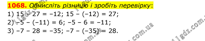 § 5. Раціональні числа. Додавання і віднімання » 1068