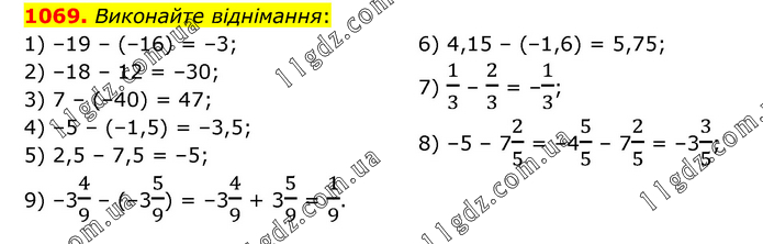 § 5. Раціональні числа. Додавання і віднімання » 1069