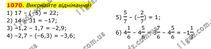 § 5. Раціональні числа. Додавання і віднімання » 1070