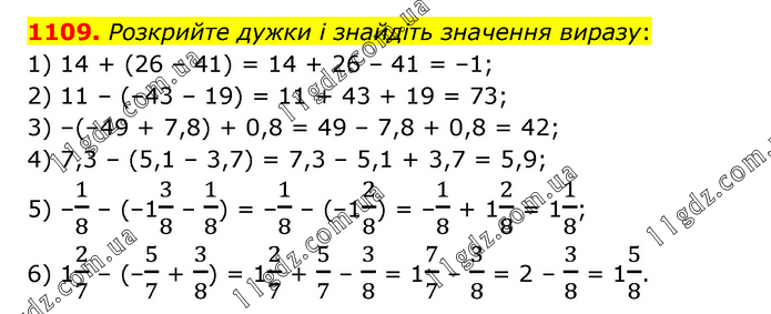§ 5. Раціональні числа. Додавання і віднімання » 1109