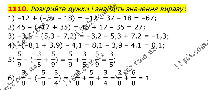 § 5. Раціональні числа. Додавання і віднімання » 1110