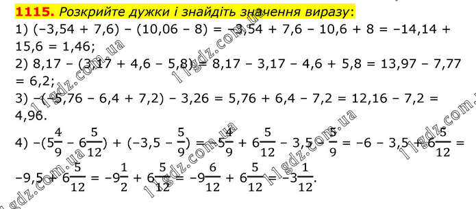 § 5. Раціональні числа. Додавання і віднімання » 1115