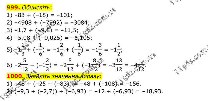 § 5. Раціональні числа. Додавання і віднімання » 999-1000