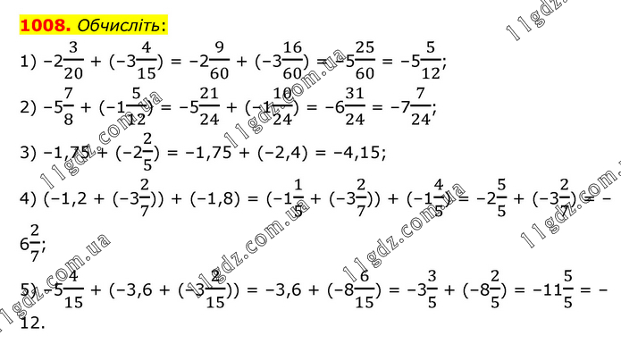 § 5. Раціональні числа. Додавання і віднімання » 1008