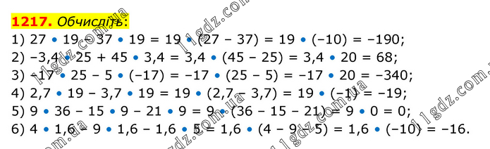 § 6. Множення і ділення раціональних чисел » 1217