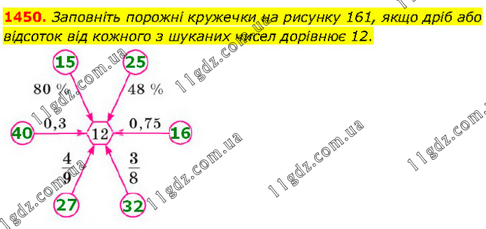 Заповніть порожні кружечки на рисунку 161, якщо дріб або відсоток від кожного з шуканих чисел дорівнює 12.