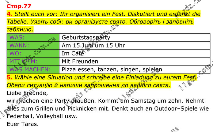 LEKTION 7. Feiern macht Spaß » Стр.77 (4-5)