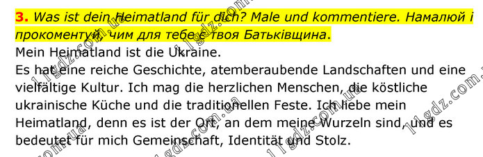 Was ist dein Heimatland für dich? Male und kommentiere. Намалюй і прокоментуй, чим для тебе є твоя Батьківщина. Mein Heimatland ist die Ukraine. Es hat eine reiche Geschichte, atemberaubende Landschaften und eine vielfältige Kultur. Ich mag die herzlichen Menschen, die köstliche ukrainische Küche und die traditionellen Feste. Ich liebe mein Heimatland, denn es ist der Ort, an dem meine Wurzeln sind, und es bedeutet für mich Gemeinschaft, Identität und Stolz.