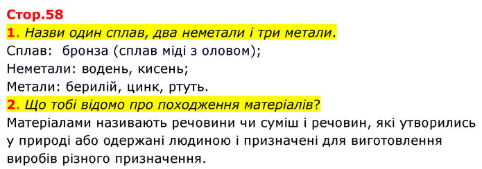 Тема 2. ДОСЛІДЖУЄМО ТІЛА, РЕЧОВИНИ, ЯВИЩА » Стр.58 (1-2)