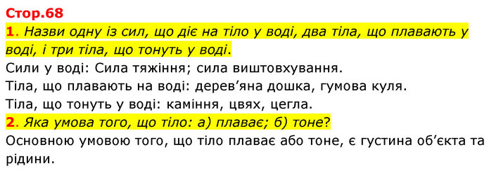 Тема 2. ДОСЛІДЖУЄМО ТІЛА, РЕЧОВИНИ, ЯВИЩА » Стр.68 (1-2)