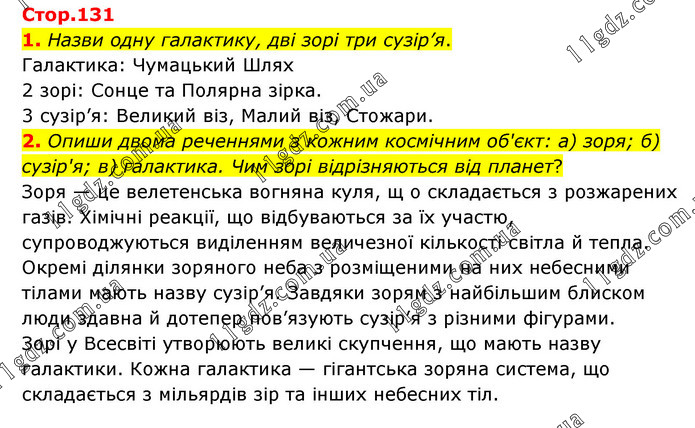 Тема 3. ДІЗНАЄМОСЯ ПРО ЗЕМЛЮ І ВСЕСВІТ » Стр.131 (1-2)