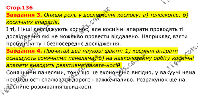 Тема 3. ДІЗНАЄМОСЯ ПРО ЗЕМЛЮ І ВСЕСВІТ » Стр.136 (3-4)