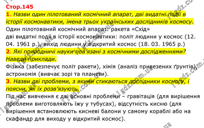 Тема 3. ДІЗНАЄМОСЯ ПРО ЗЕМЛЮ І ВСЕСВІТ » Стр.145 (1-3)