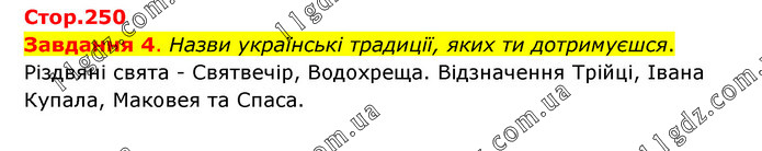 Завдання 4. Назви українські традиції, яких ти дотримуєшся. Різдвяні свята - Святвечір, Водохреща. Відзначення Трійці, Івана Купала, Маковея та Спаса.