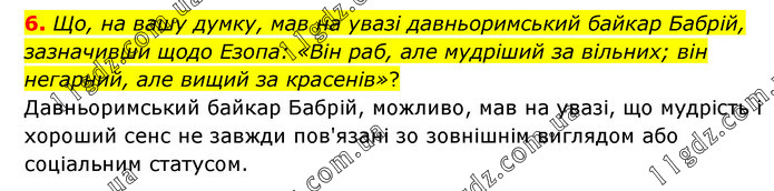 Що, на вашу думку, мав на увазі давньоримський байкар Бабрій, зазначивши щодо Езопа: «Він раб, але мудріший за вільних; він негарний, але вищий за красенів»? Давньоримський байкар Бабрій, можливо, мав на увазі, що мудрість і хороший сенс не завжди пов'язані зо зовнішнім виглядом або соціальним статусом.